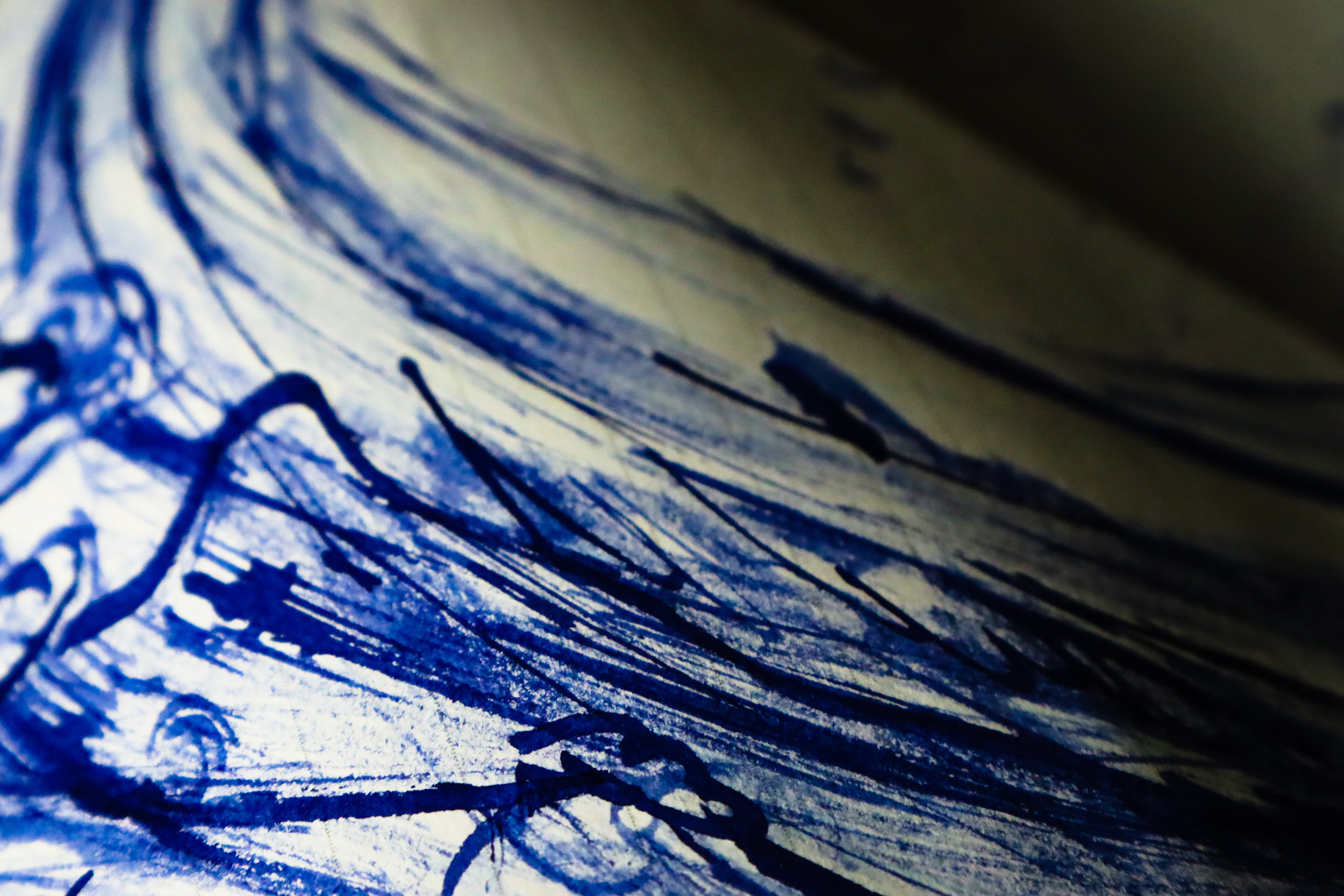 I use the end of a pencil to dip into a bottle of ink and draw on paper. The drawings I created with this new method depict the boundary between my dream and reality. I wanted to remember my dreams vividly and visually so that I could always remember them. Often, our dreams lack logic, sense, and a clear picture, but they always have a hint of truth. By using my messier drawing method, I was able to reflect that sense of a small bit of truth in a more chaotic environment. I think we all need to lose a bit of control to find out who we are; that’s what I attempted to do with these drawings.